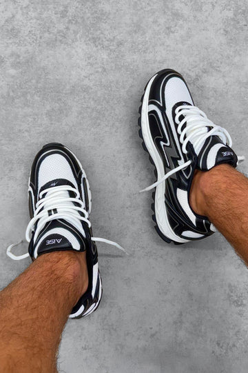 The Oreo Cosmo Runner is where luxury meets performance crafted with premium Italian leather and custom white mesh for a sleek, breathable design. Set on a state-of-the-art midsole with a precision-grip outsole, it offers responsive support and cloud-like comfort with every step. Silver detailing on a pristine Black base adds a refined touch, making this not just a running shoe, but a bold statement in modern sophistication.